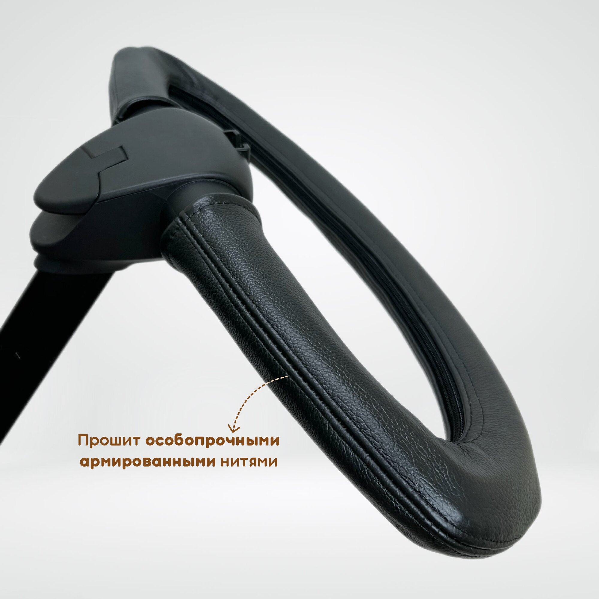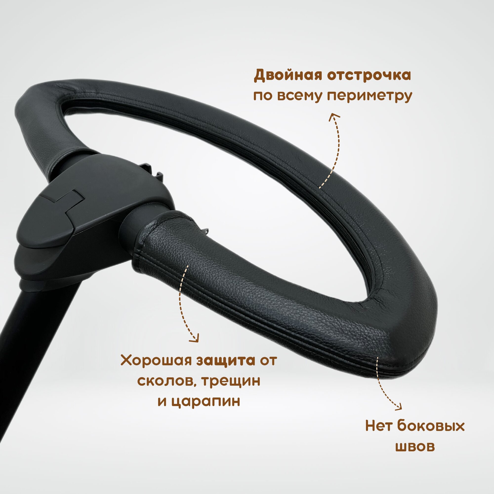 Чехол из натуральной кожи на ручку коляски Stokke Xplory V3-V6, X и иные модели DSLand, Doux Bebe, Burbay Aristo, цвет чёрный с тиснением интересное: