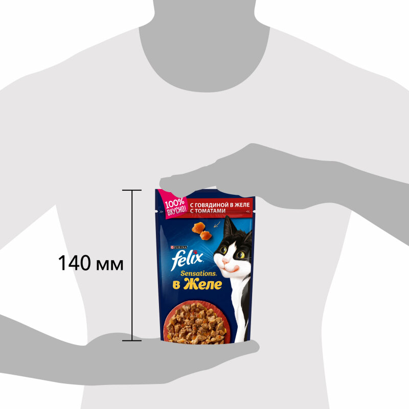 Влажный корм FELIX Sensations для взрослых кошек, с говядиной в желе с томатами, Пауч, 85 г, 24 шт