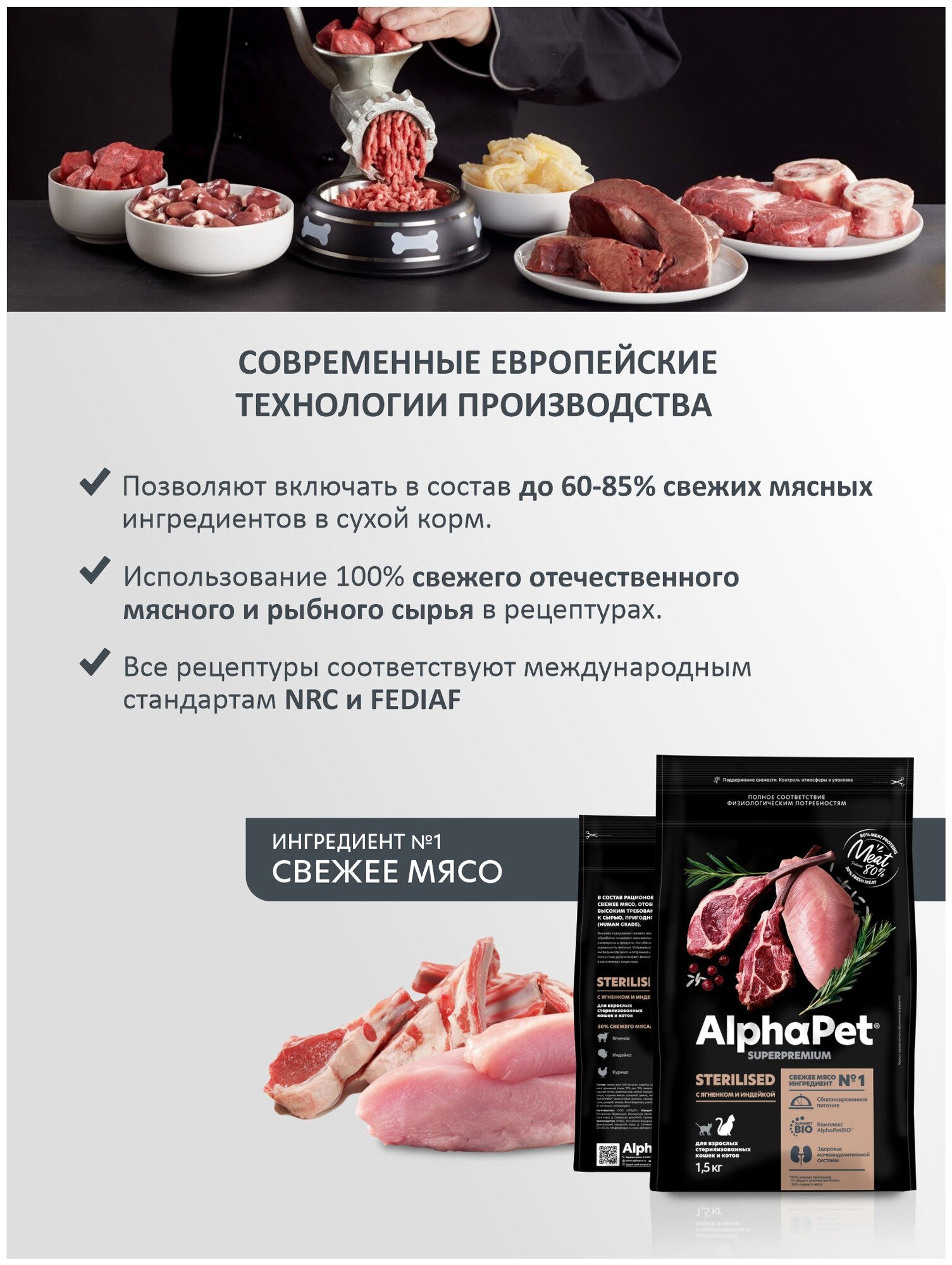 Сухой полнорационный корм AlphaPet (АльфаПет) Superpremium для взрослых стерилизованных кошек и котов, с ягненком и индейкой, 1,5 кг