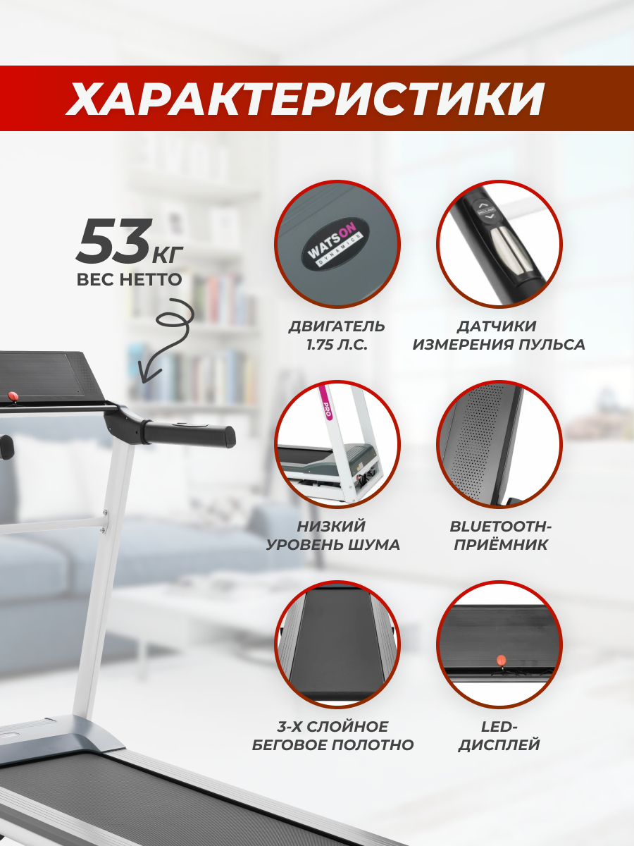 Беговая дорожка электрическая складная для дома Watson Dynamics Pro максимальный вес 110 кг. интересное:
