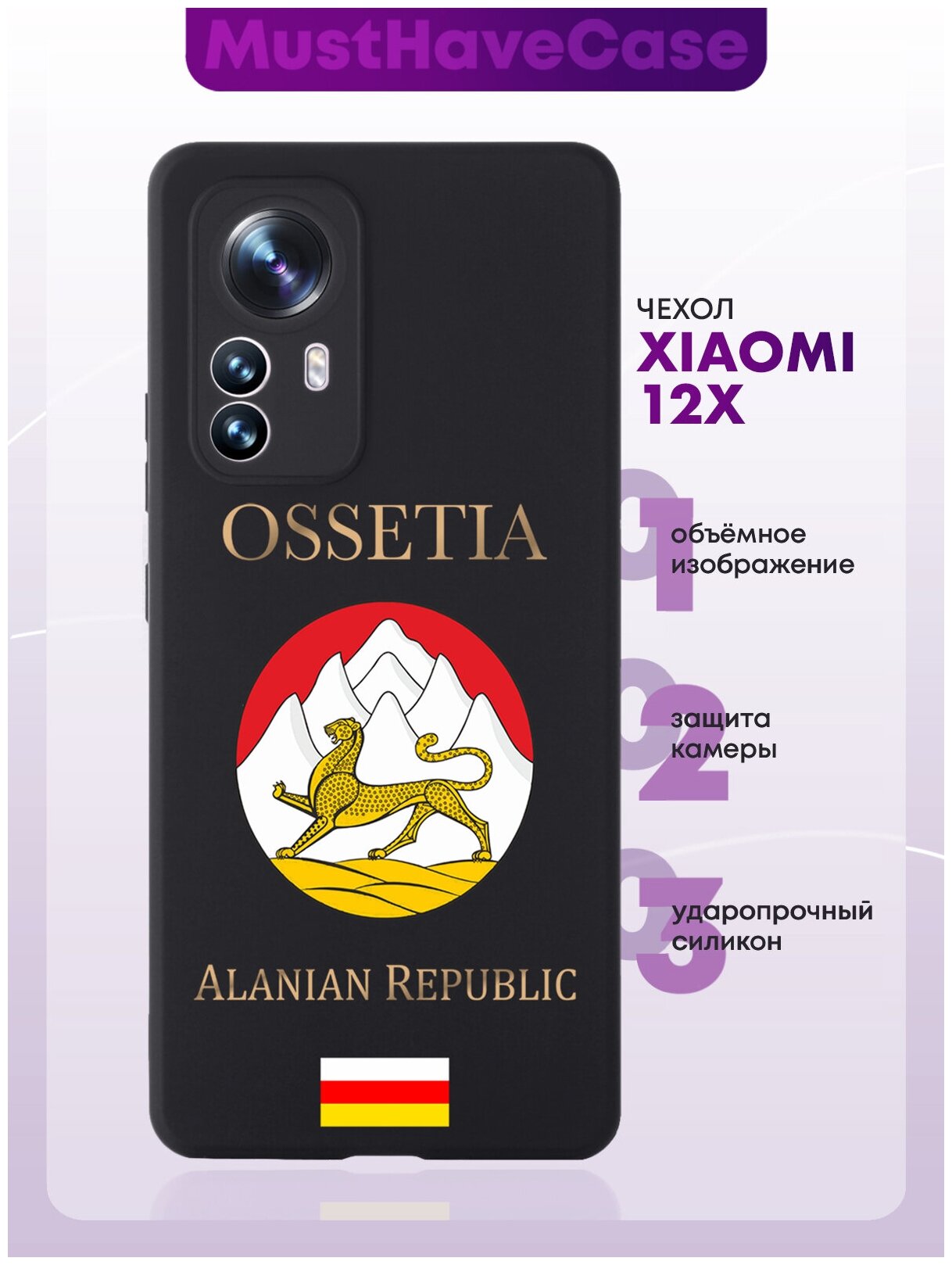 Черный силиконовый чехол MustHaveCase для Xiaomi 12X Черный лаковый Герб Северной Осетии для Сяоми 12 Икс