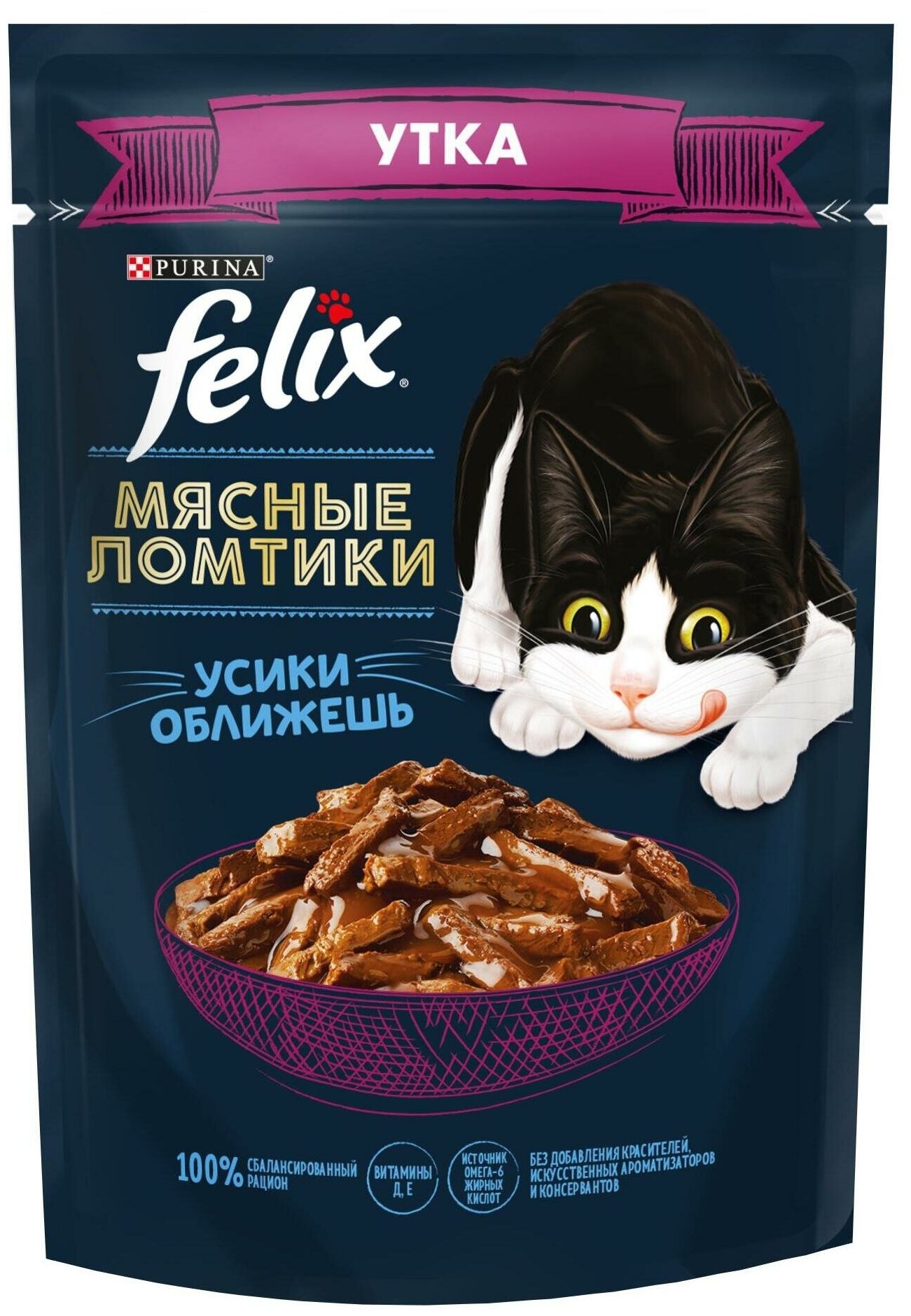 Купить Влажный корм Felix Мясные Ломтики полнорационный для взрослых кошек, с уткой, 75г*26 шт