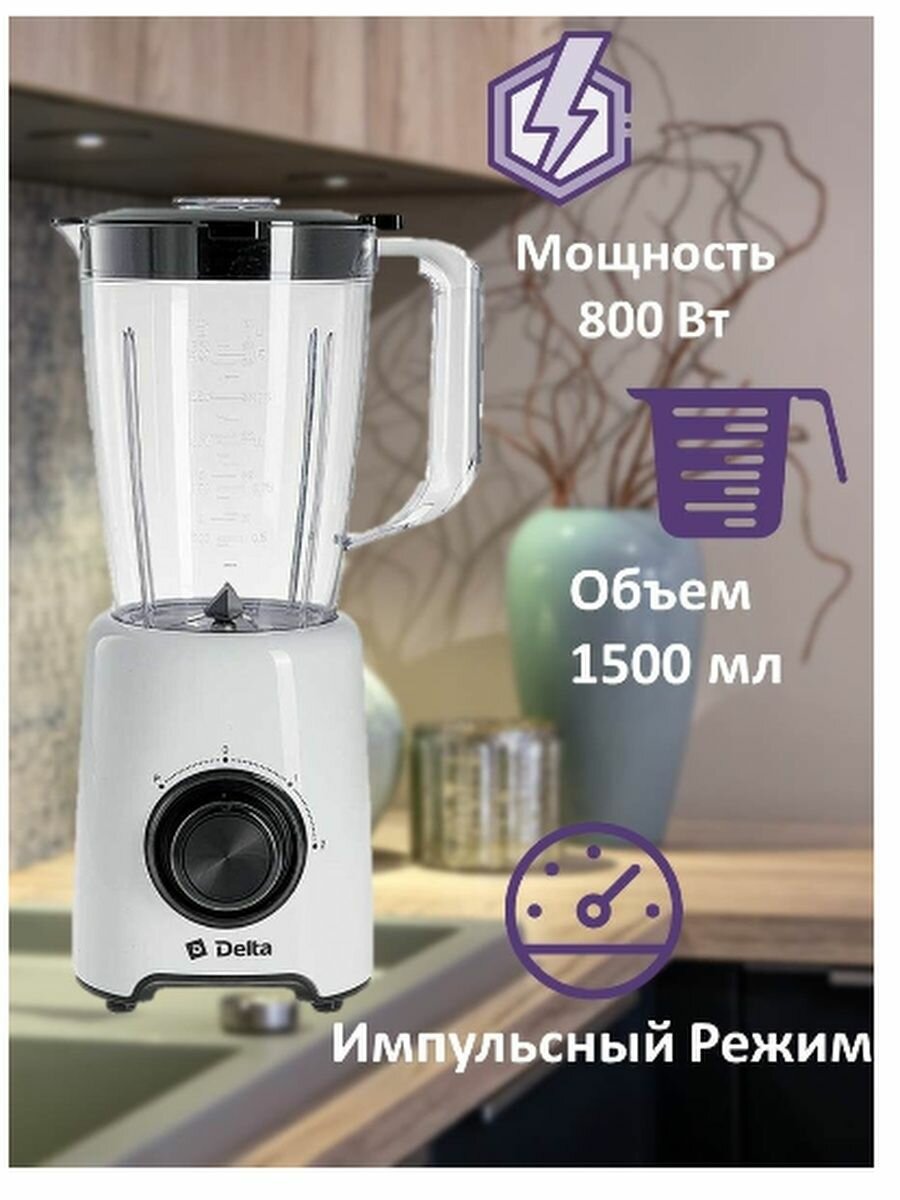 Блендер стационарный 800 Вт, 1,5 л DELTA DL-7317 с пластиковой чашей, белый с черным интересное: