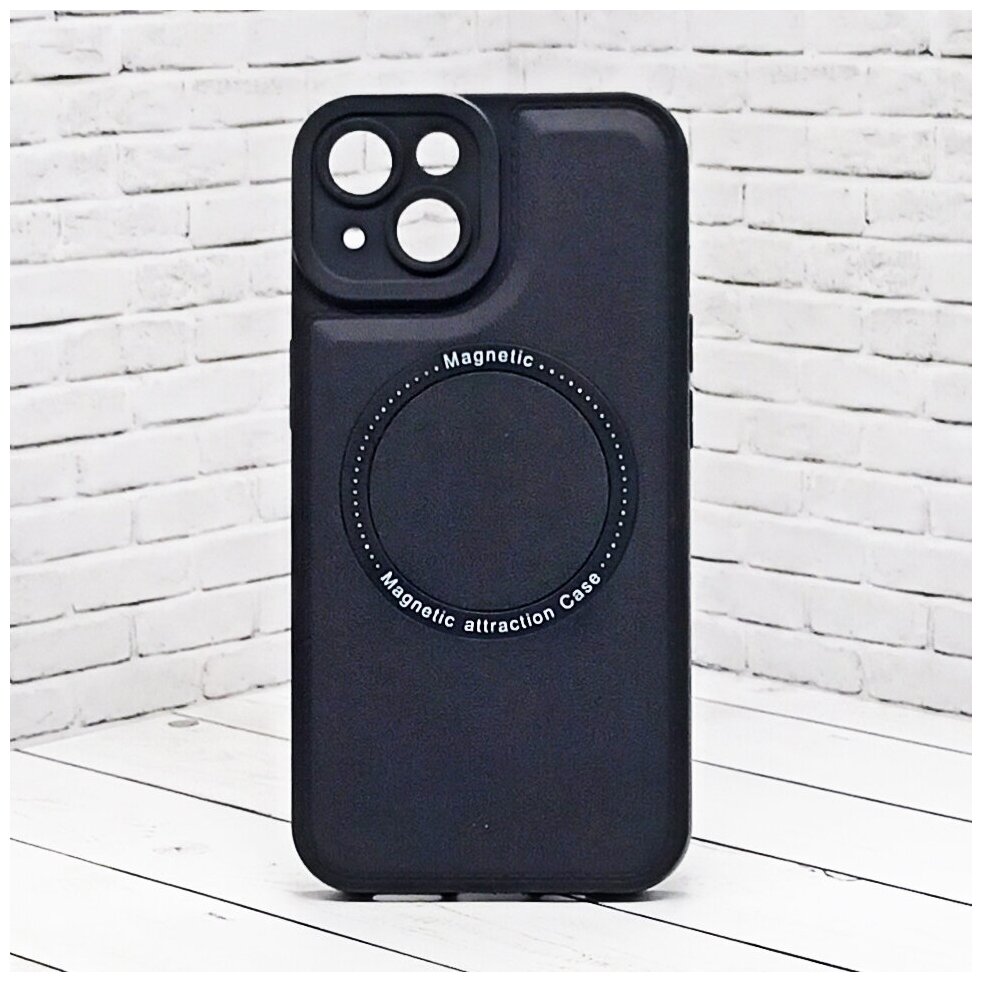 Чехол Magsafe для Apple iPhone 14 под кожу черный интересное: