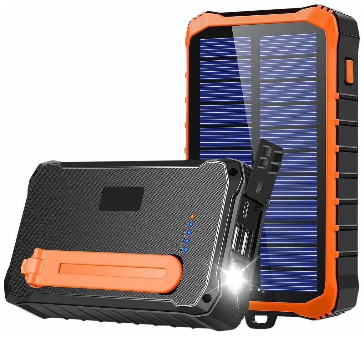 SENNBEYER power bank 30000 мАч, солнечная батарея, с кабелем и экраном.
