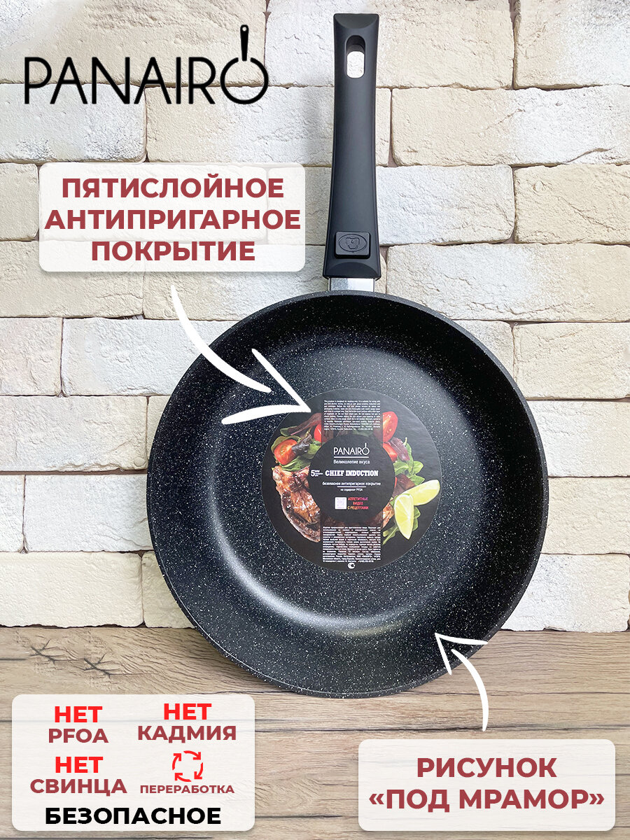 Индукционная глубокая сковорода 28см Panairo "Chief induction" cо съемной ручкой soft-touch