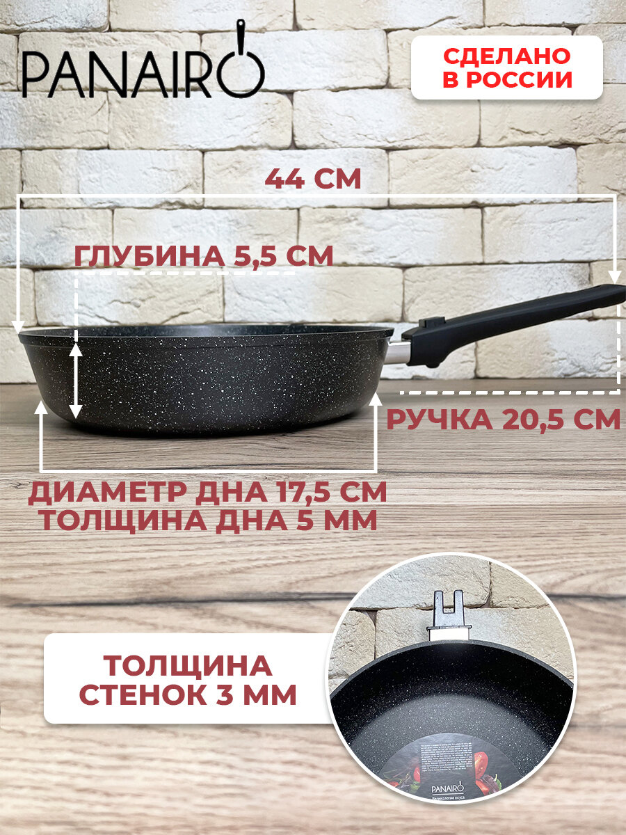 Индукционная глубокая сковорода 24см Panairo "Chief induction" cо съемной ручкой soft-touch интересное: