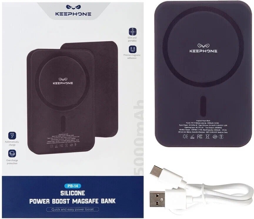 Внешний аккумулятор powerbank Keephone, 5000mah, MagSafe/Lightning/USB-C Fast для iPhone 14/13/12 , черный