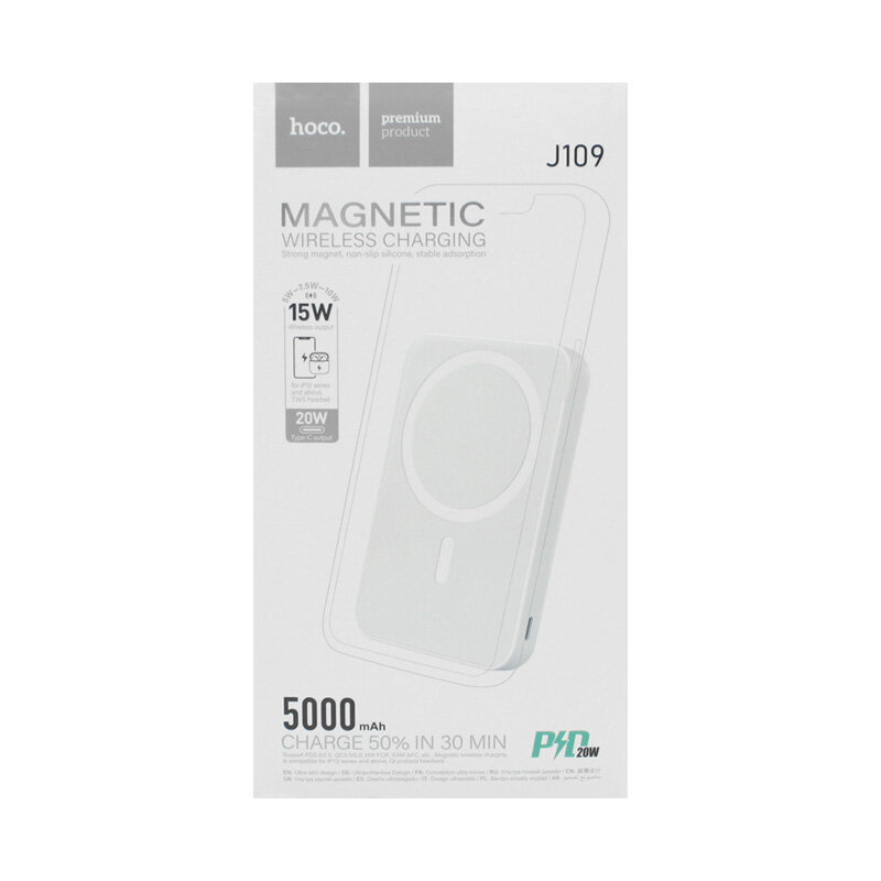 Внешний аккумулятор повербанк Hoco J109 5000 mAh MagSafe с быстрой зарядкой fast charge (PD/QC/FCP/AFC), белый