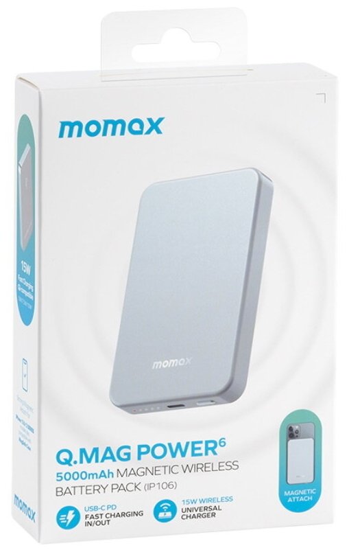 Купить Внешний аккумулятор с беспроводной зарядкой Momax Q.Mag Power 6 Magnetic Wireless Battery Pack 5000mAh Blue (IP106B)