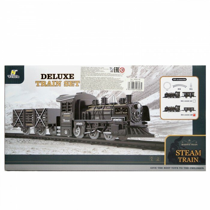 Железная дорога с паром (свет и звук) (1 паровоз + 1 вагон) 1603C-3D интересное: