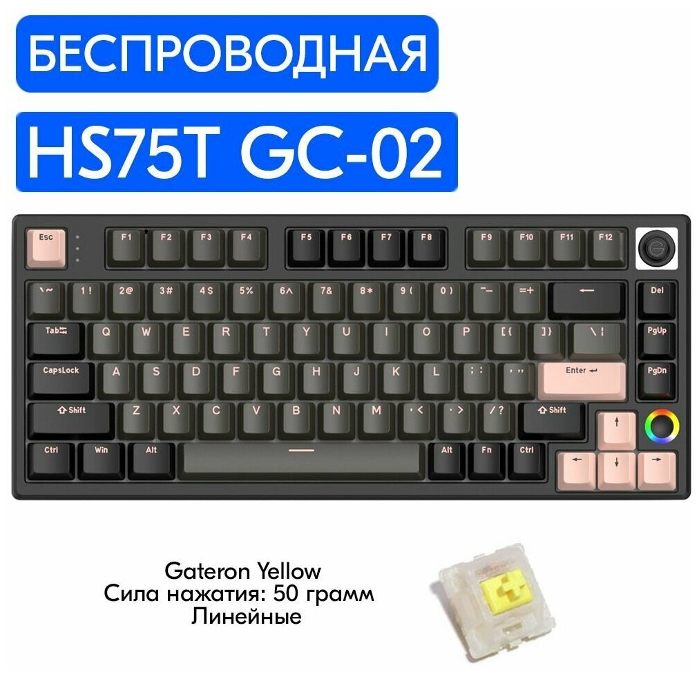 Беспроводная игровая механическая клавиатура HELLO GANSS HS75T GC-02 переключатели Gateron Yellow, английская раскладка интересное: