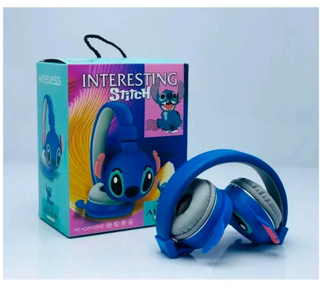 Наушники беспроводные Стич синий накладные детские / bluetooth с USB зарядкой и активным шумоподавлением интересное: