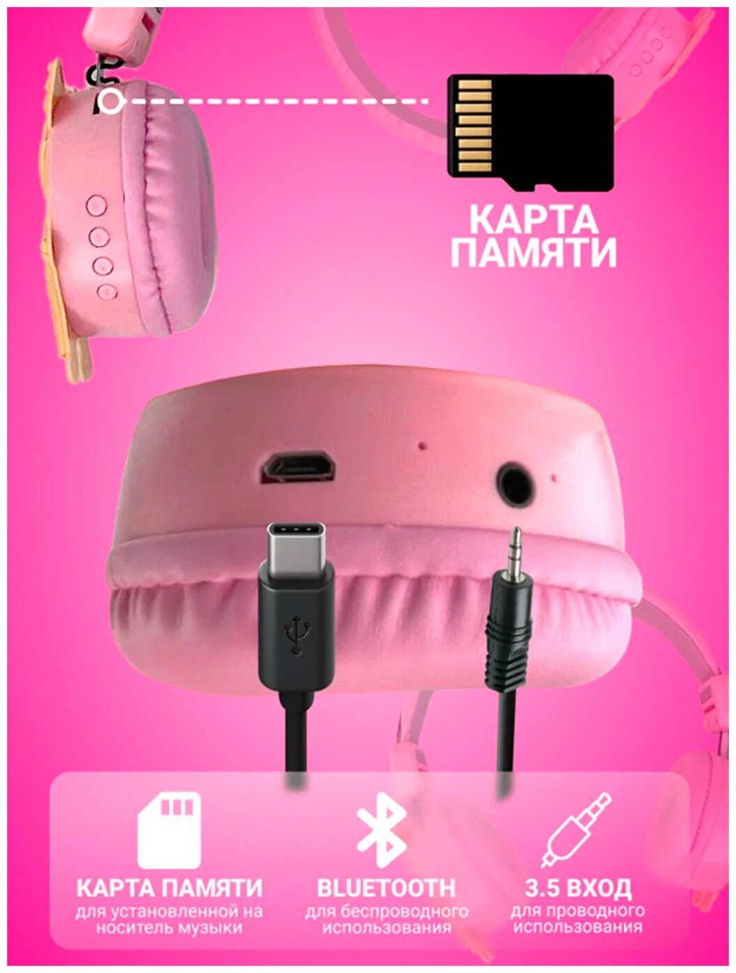 | Конструктивные особенности | для детей / для спорта / картридер / микрофон / складная конструкция |