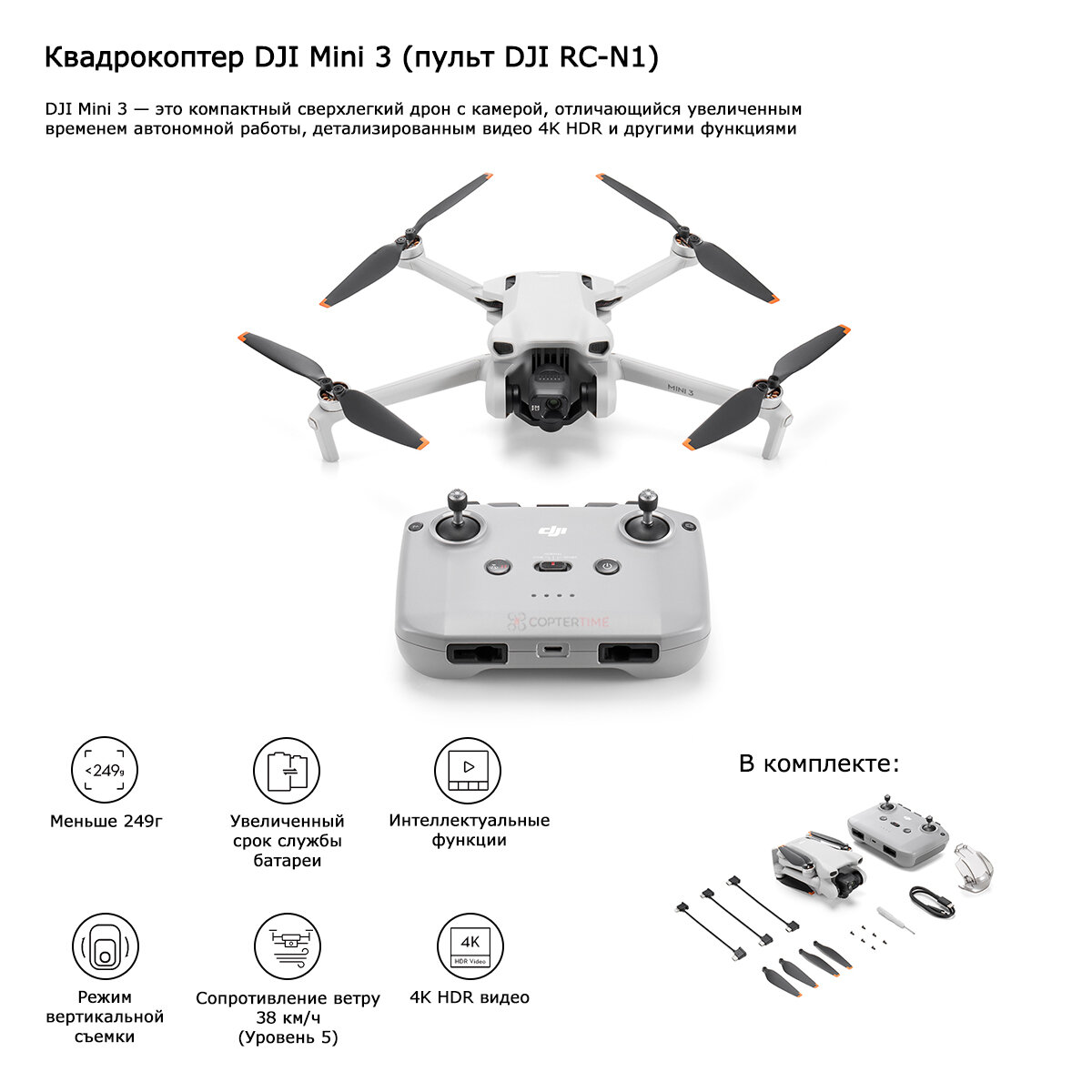 Квадрокоптер DJI Mini 3 (RC-N1) интересное: