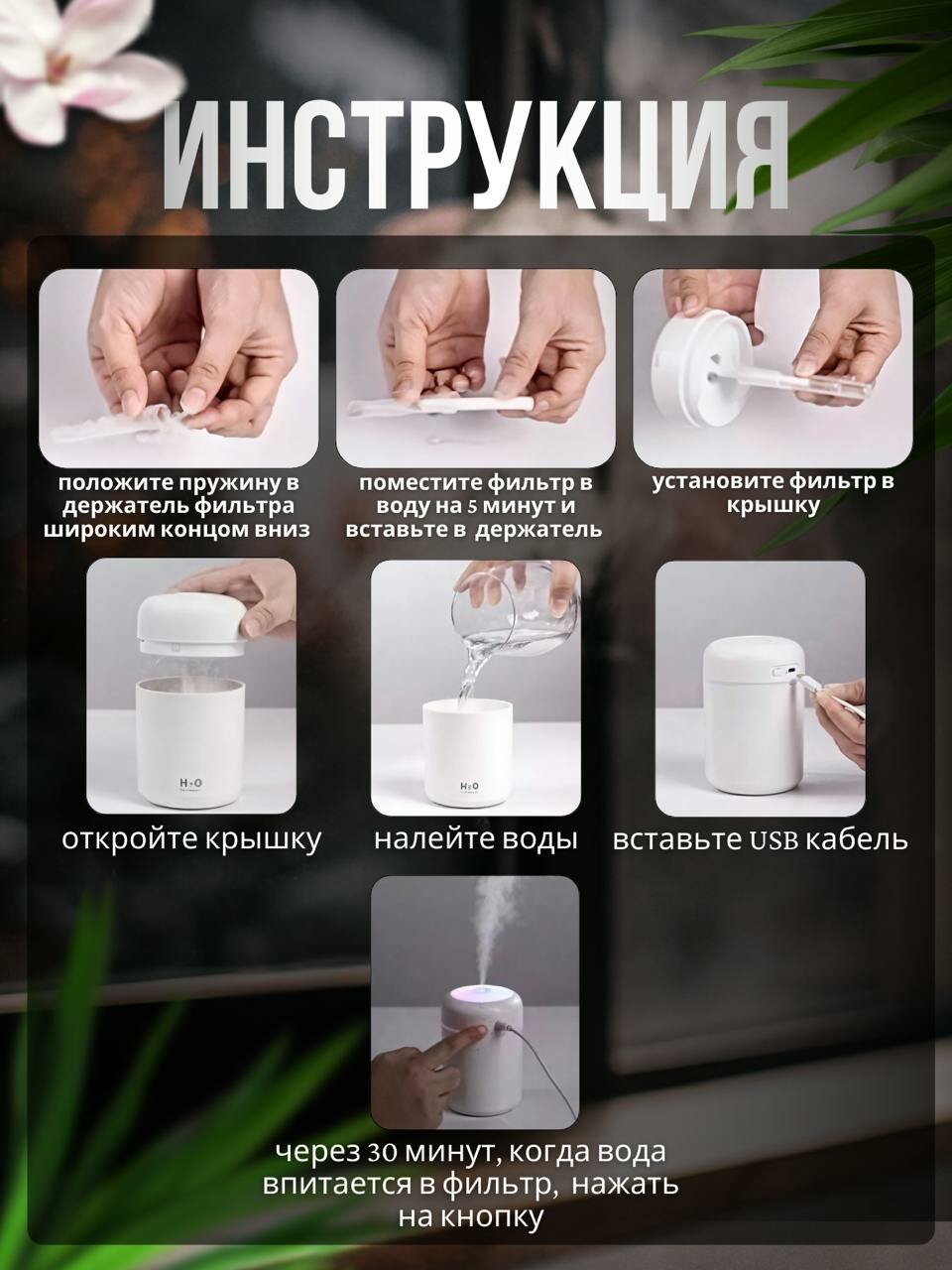 Увлажнитель воздуха H2O / Аромадиффузор ночник / Ультразвуковой освежитель с подсветкой белый интересное: