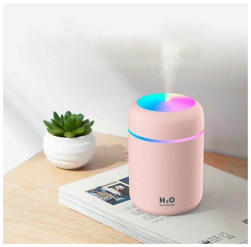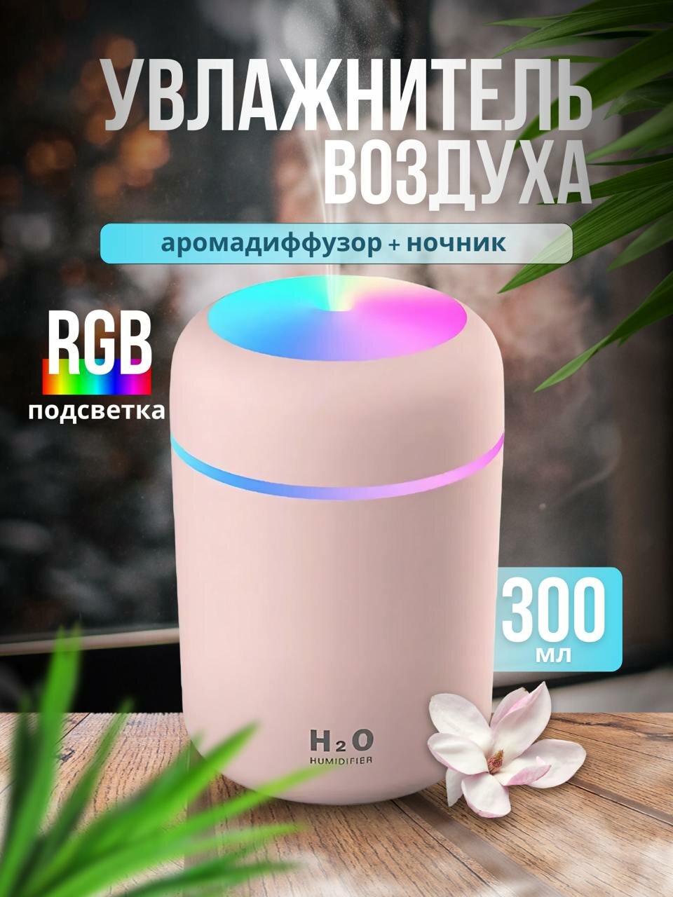 Увлажнитель воздуха H2O / Аромадиффузор ночник / Ультразвуковой освежитель с подсветкой розовый интересное: