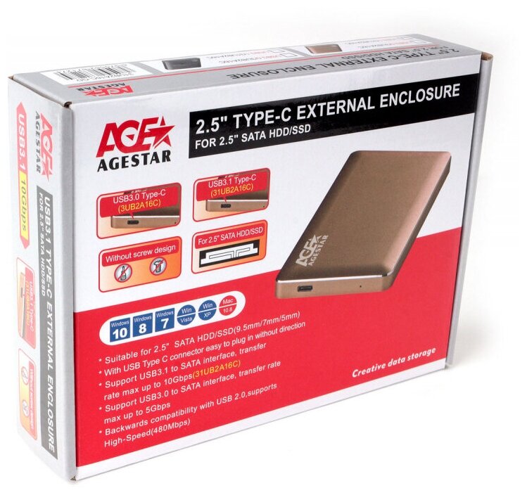 Внешний корпус для HDD 2.5" AgeStar 31UB2A16C алюминий, золотой, USB 3.1 интересное: