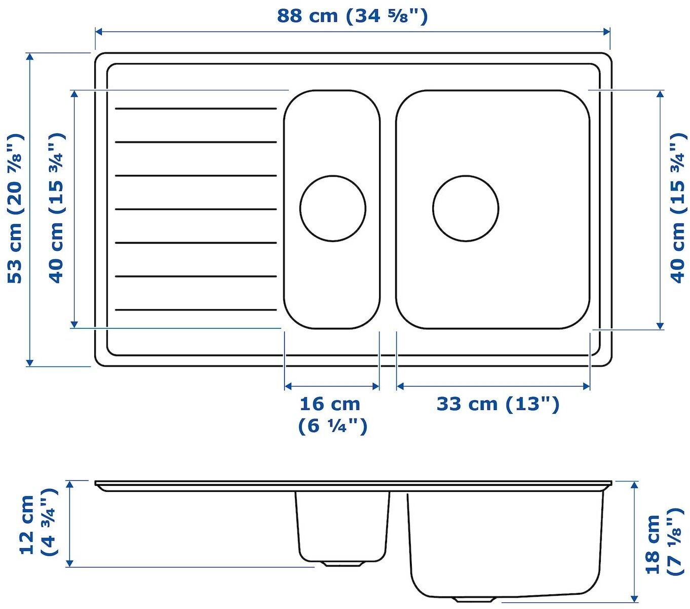 | Минусы: | Раньше мелкая ёмкость в такой же мойке от икеа была по обратную сторону от большей ёмкости мне кажется так было удобнее |