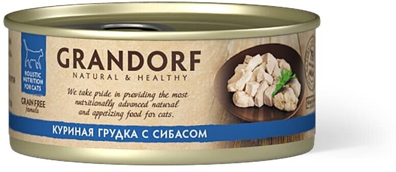 Купить Консервы Grandorf для кошек: куриная грудка с сибасом / 70г х 6шт