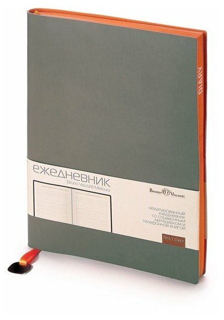 Ежедневник недатированный А5+ искусственная кожа « Bruno Visconti » 136л Mercury Серый, линия, белый офсет 70г/м2, печать в 2 краски, ляссе, скруглен