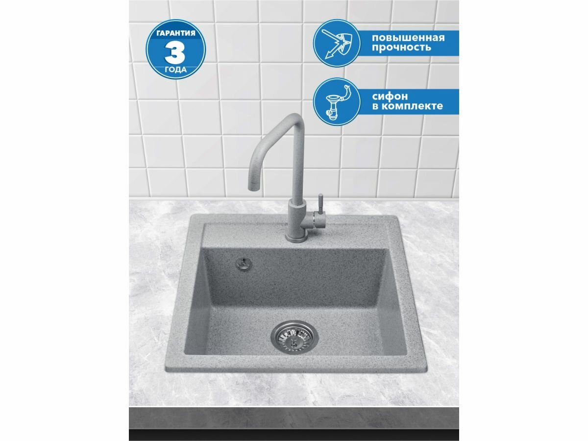 Мойка кухонная из искусственного камня STAR серый 510х505 mm, AV Engineering (AV505515SGRA) интересное: