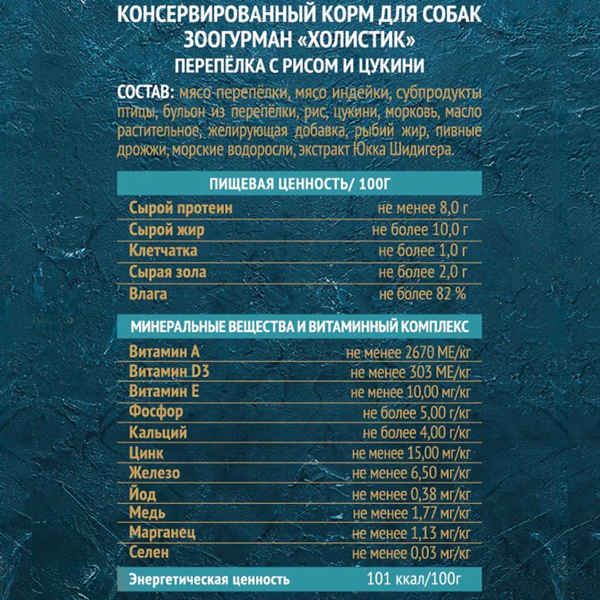 Зоогурман Holistic Консервы для собак с Перепелкой, Рисом и Цукини