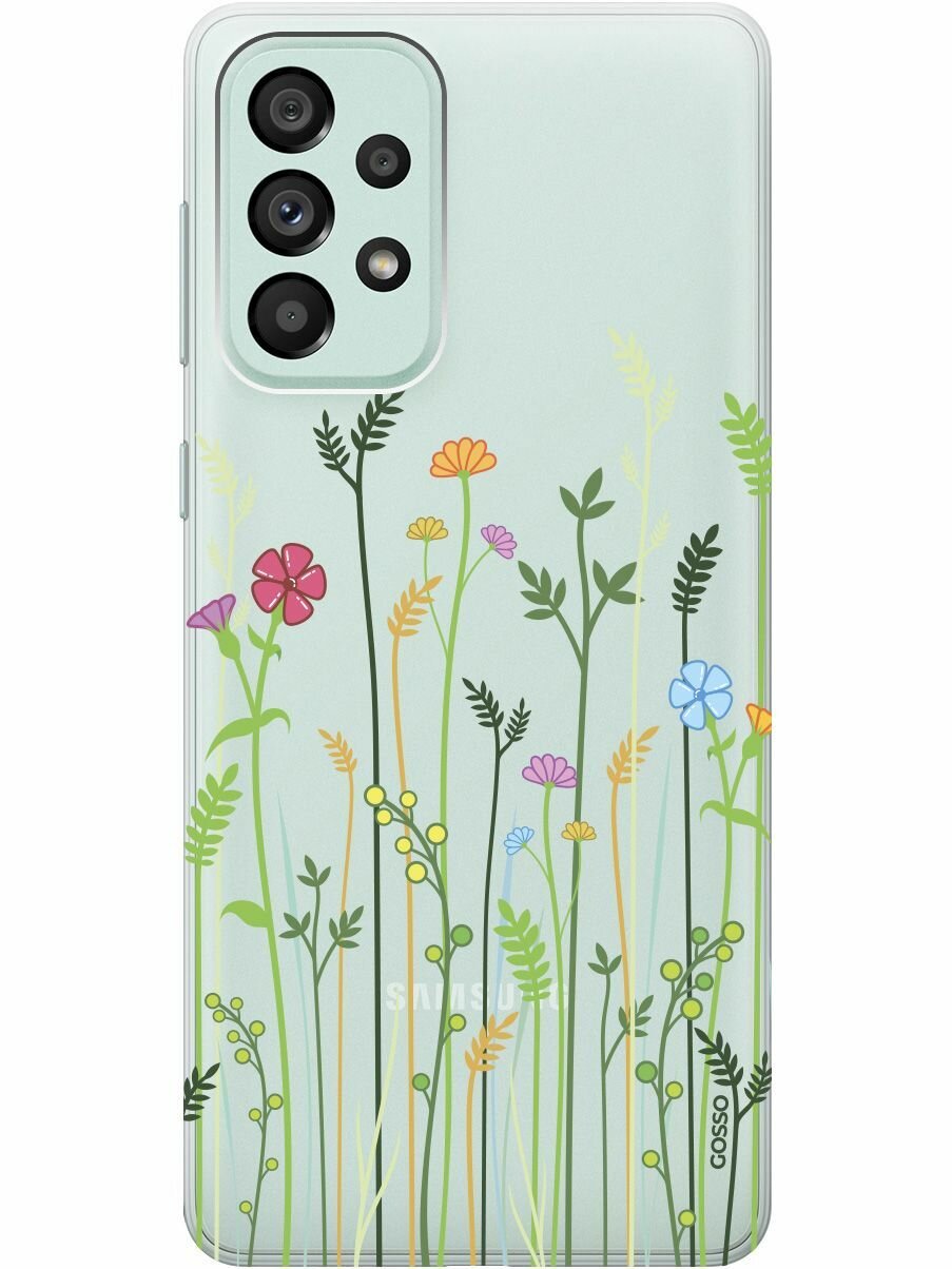 Силиконовый чехол на Samsung Galaxy A73 5G, Самсунг А73 5Г с 3D принтом "Lovely Cornflowers" прозрачный