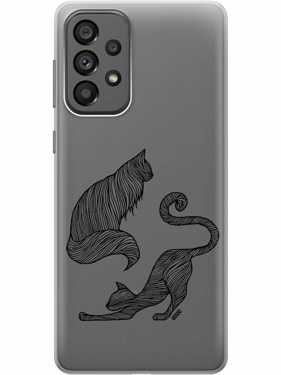 Силиконовый чехол на Samsung Galaxy A73 5G / Самсунг А73 5Г с 3D принтом "Cats in Love" прозрачный