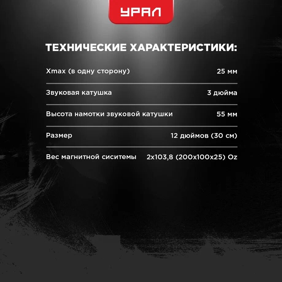 Пассивный автомобильный сабвуфер урал Патриот 12 Гром, 3000Вт, 84дБ, 4Ом, 12 дюймов (30 см)