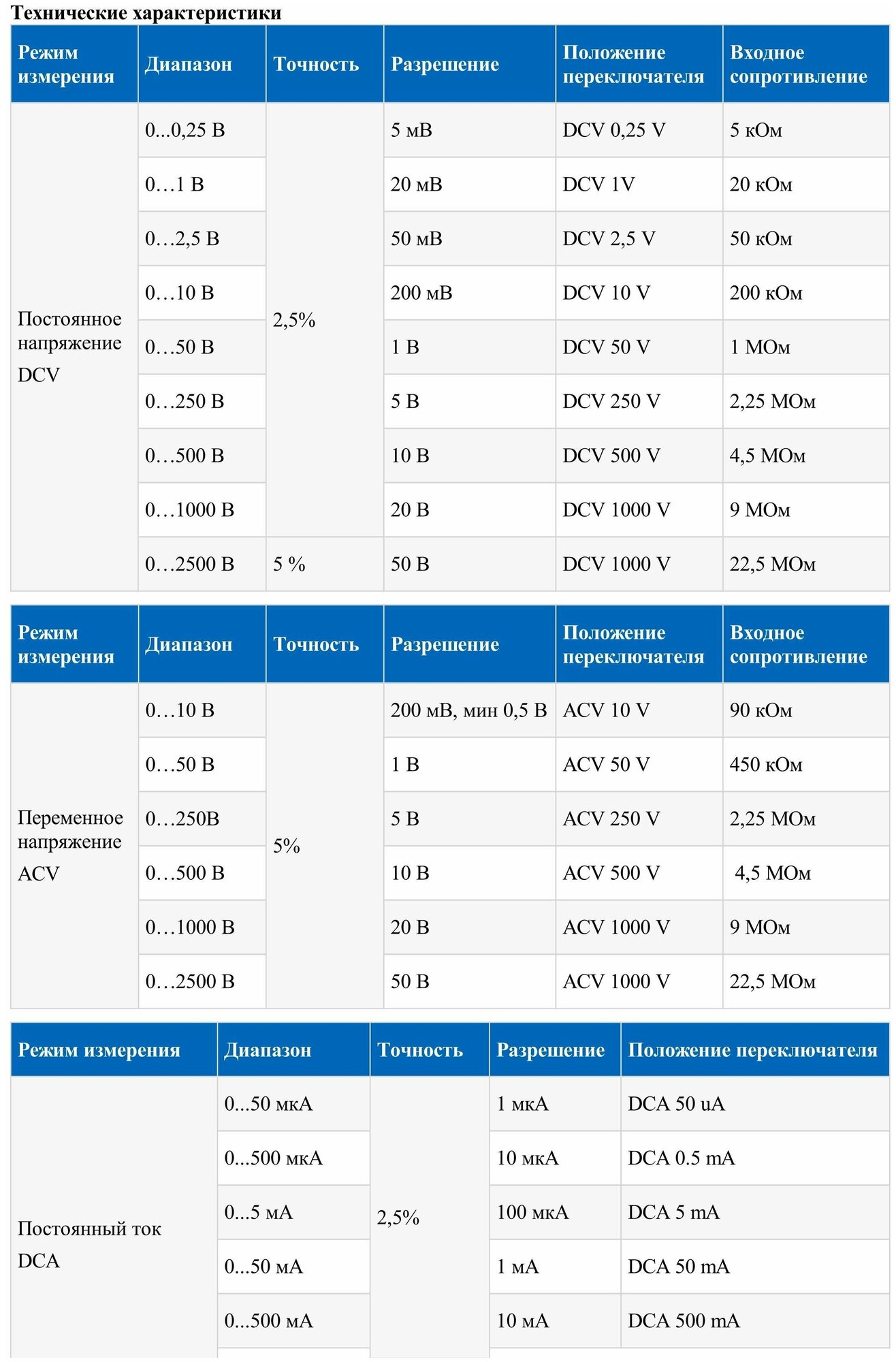 | Функции | выявление повреждения проводки и соединения, измерение емкости конденсаторов, измерение переменного напряжения, измерение постоянного напряжения, измерение работоспособности диодов и транзисторов, измерение силы переменного тока, измерение силы постоянного тока, измерение сопротивления, измерение частоты |
