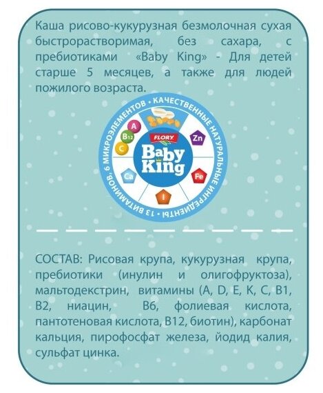 Каша безмолочная Baby King рисово-кукурузная с пребиотиками для детей с 5 мес, Сербия, 200г интересное: