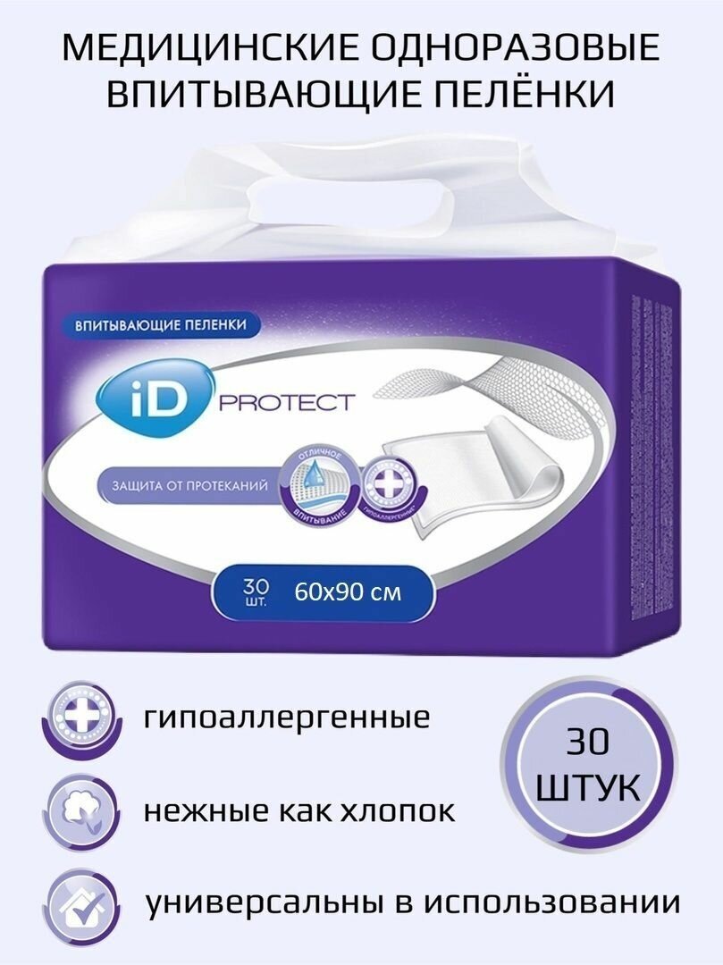Пеленки iD Protect, 60x90 см, 30 шт.