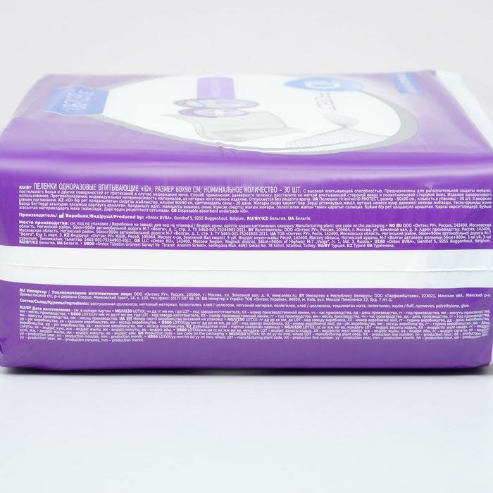 Купить Пелёнки одноразовые впитывающие iD Protect, размер 60x90, 30 шт.