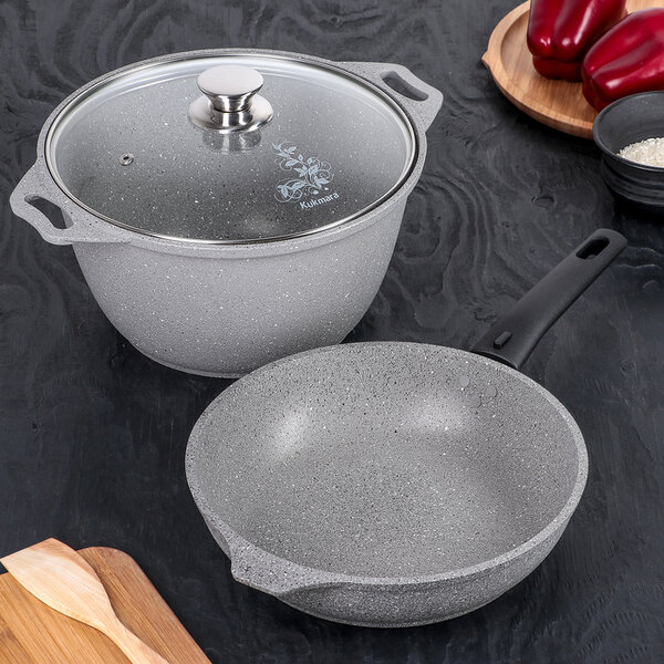 Купить Набор кухонной посуды Мраморная 7, антипригарное покрытие, цвет светлый мрамор KUKMARA 4206809 .