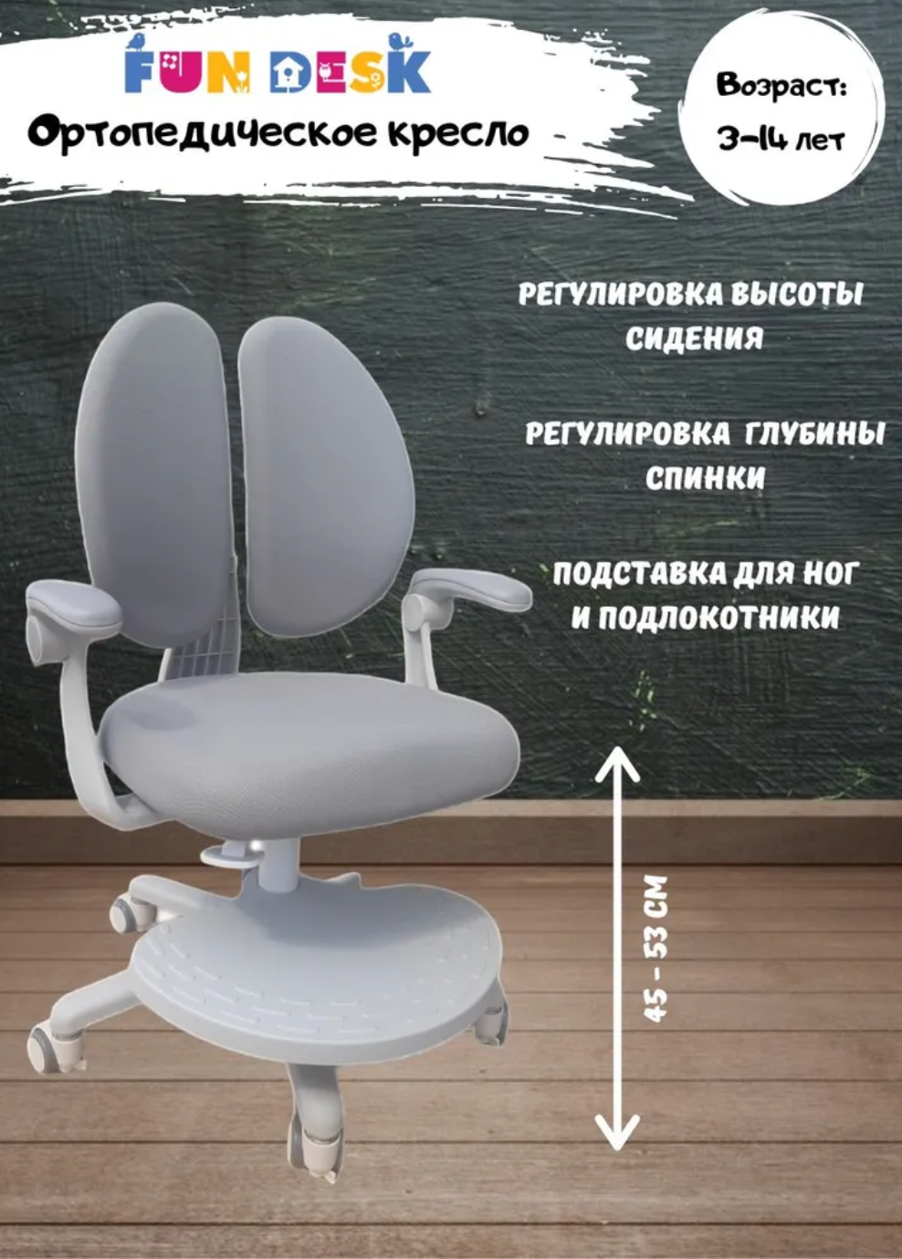 Комплект Fundesk Детское кресло Fresco Grey (с подлокотниками и подставкой)