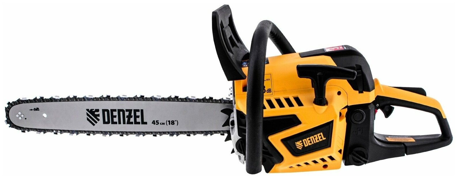 Пила цепная бензиновая DENZEL DS-5218, шина 45 см, 52 см3, 3 л.с, шаг 0,325, 72 звена