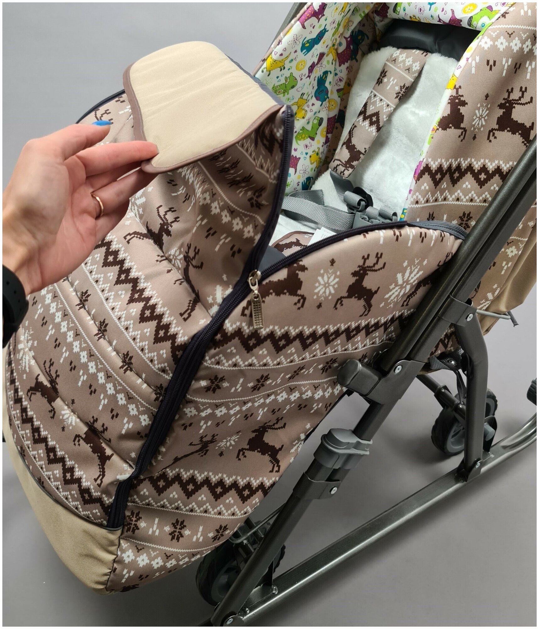 Санки-коляска Галактика Детям 3-1 Скандинавская ночь (олени на коричневом) интересное: