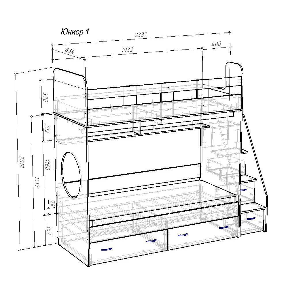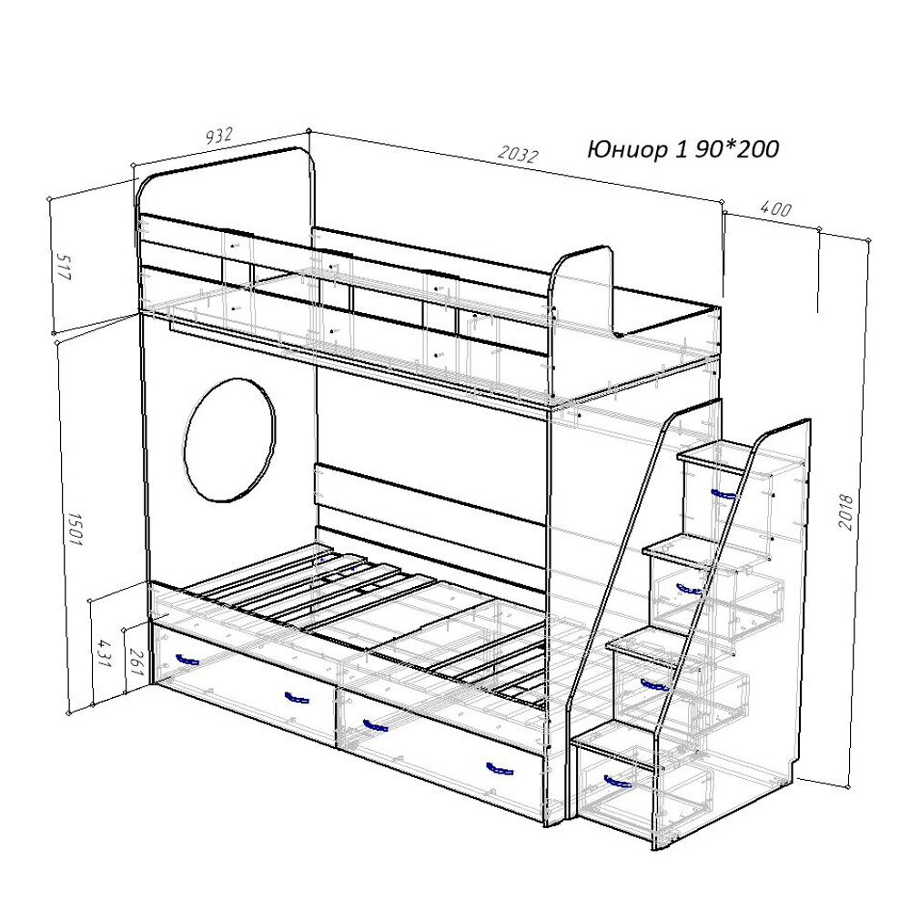 Двухъярусная кровать Юниор 1 80x190 Дуб Молочный Винтерберг интересное: