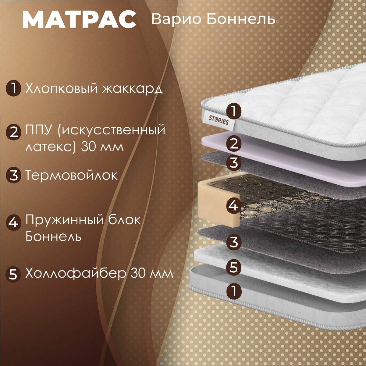 Матрас Stories Варио Боннель 160х195, стандартный