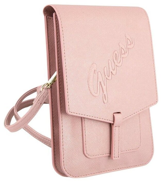 Сумка Guess Wallet Bag Saffiano Script logo для смартфонов, розовая интересное: