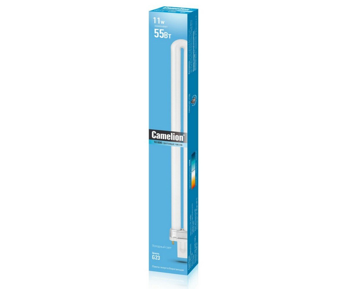 Лампа люминесцентная энергосберегающая Camelion LH11-U, 11 Вт, G23, холодный белый свет