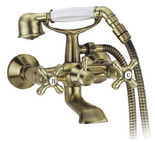 Двухвентильный смеситель для ванны с душевой лейкой и коротким изливом Gappo G3263-4 бронза, латунь интересное: