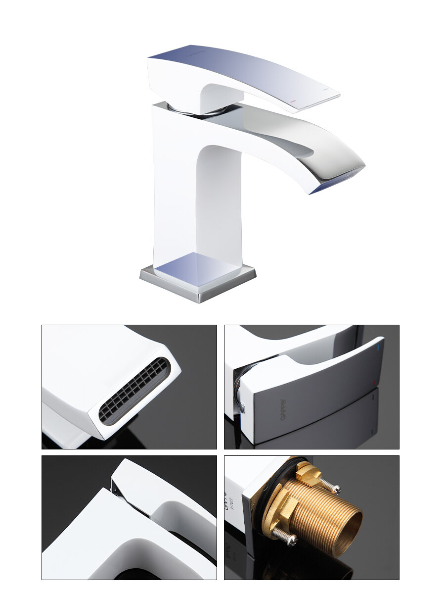 Смеситель для раковины (умывальника) Gappo G1007-8 белый/хром латунь