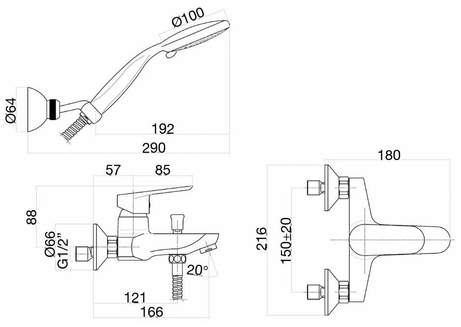 Смеситель для ванны с душем Fiore Kevon-Chic 81BX8150 с душевым гарнитуром, черный/хром