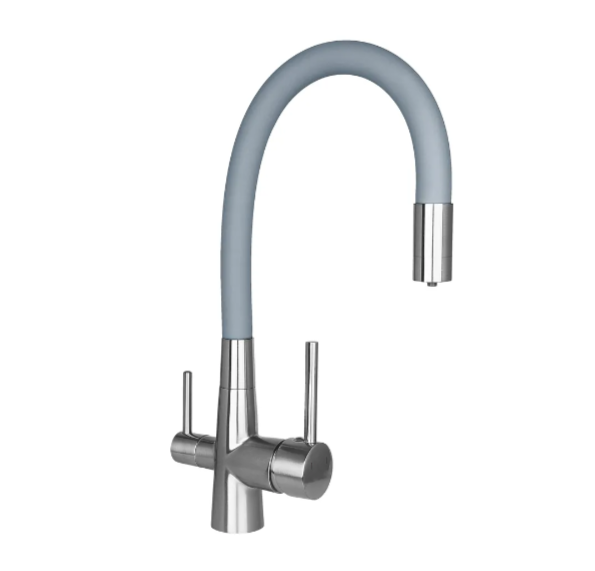 Смеситель для кухни с гибким изливом и подключением к фильтру с питьевой водой Hansen 15180P Хром + Серый
