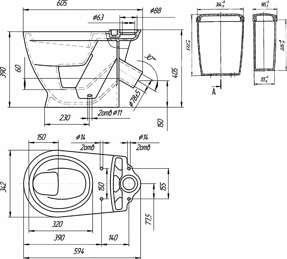 | Комплектация | бачок / сиденье |
