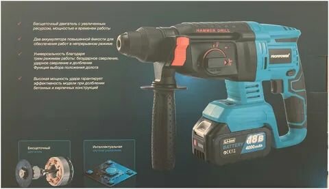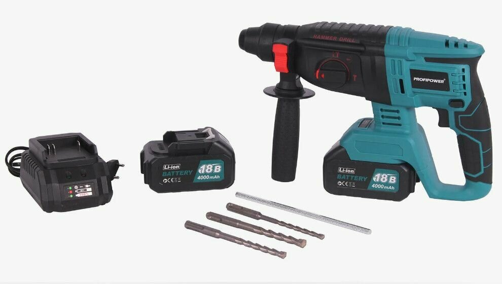 Аккумуляторный перфоратор беcщеточный ProfiPower MKDHR-18V (Li-ion-2шт, 4.0Ач, 1,9Дж, 3 режима, З/У, кейс) ProfiPower интересное: