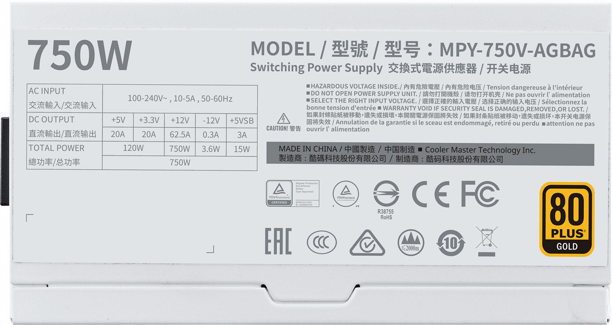 Купить Блок питания Cooler Master ATX 750W V Gold V2 WHITE CASE 80+ gold (24+8+4+4pin) APFC 135mm fan 12xSATA Cab Manag RTL