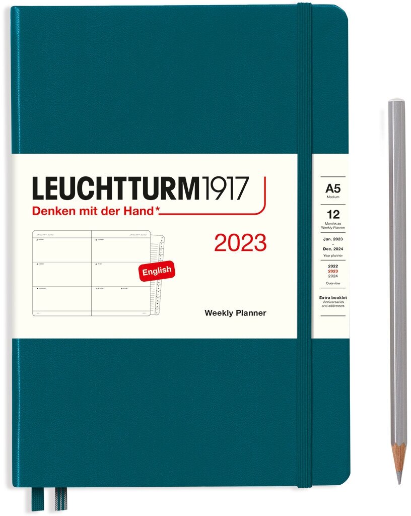 Еженедельник-планер Leuchtturm1917 Medium A5 (14.5x21см.) датированный на 2023 год, 80г/м2 - 144стр., твердая обложка, цвет: синий камень